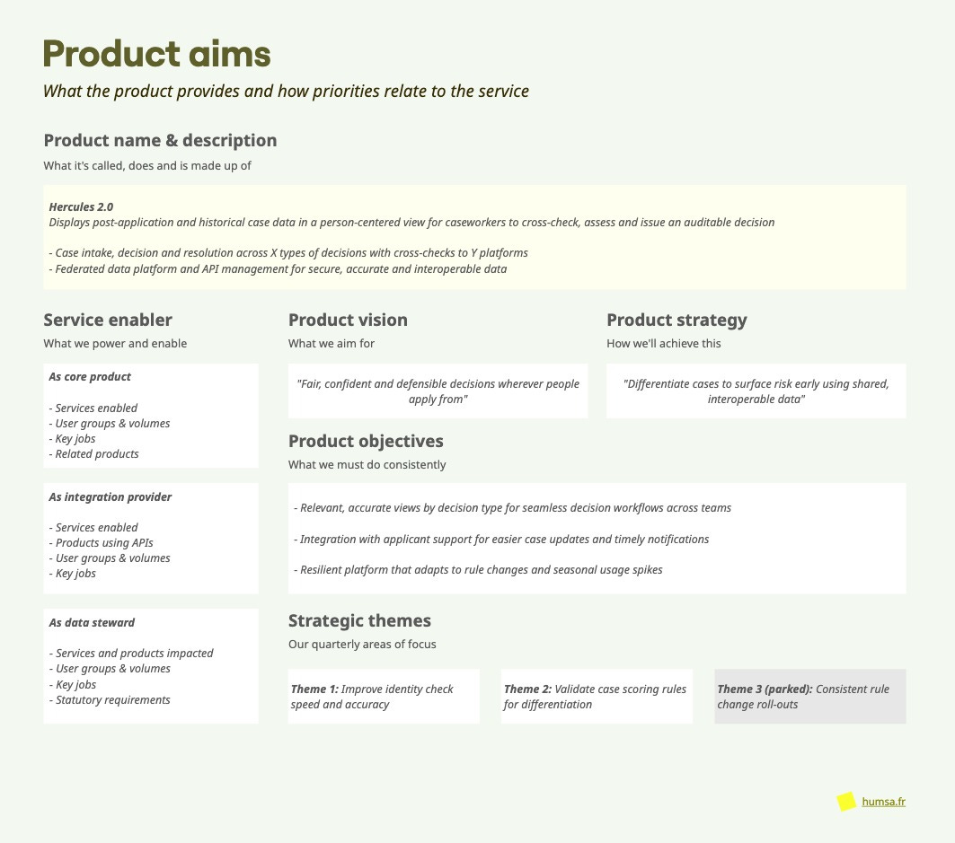 We can define what ‘differentiate’ and ‘fair’ mean tangibly in different services and reflect service outcomes. Strategic themes can be used to organise roadmaps and check work in progress against.