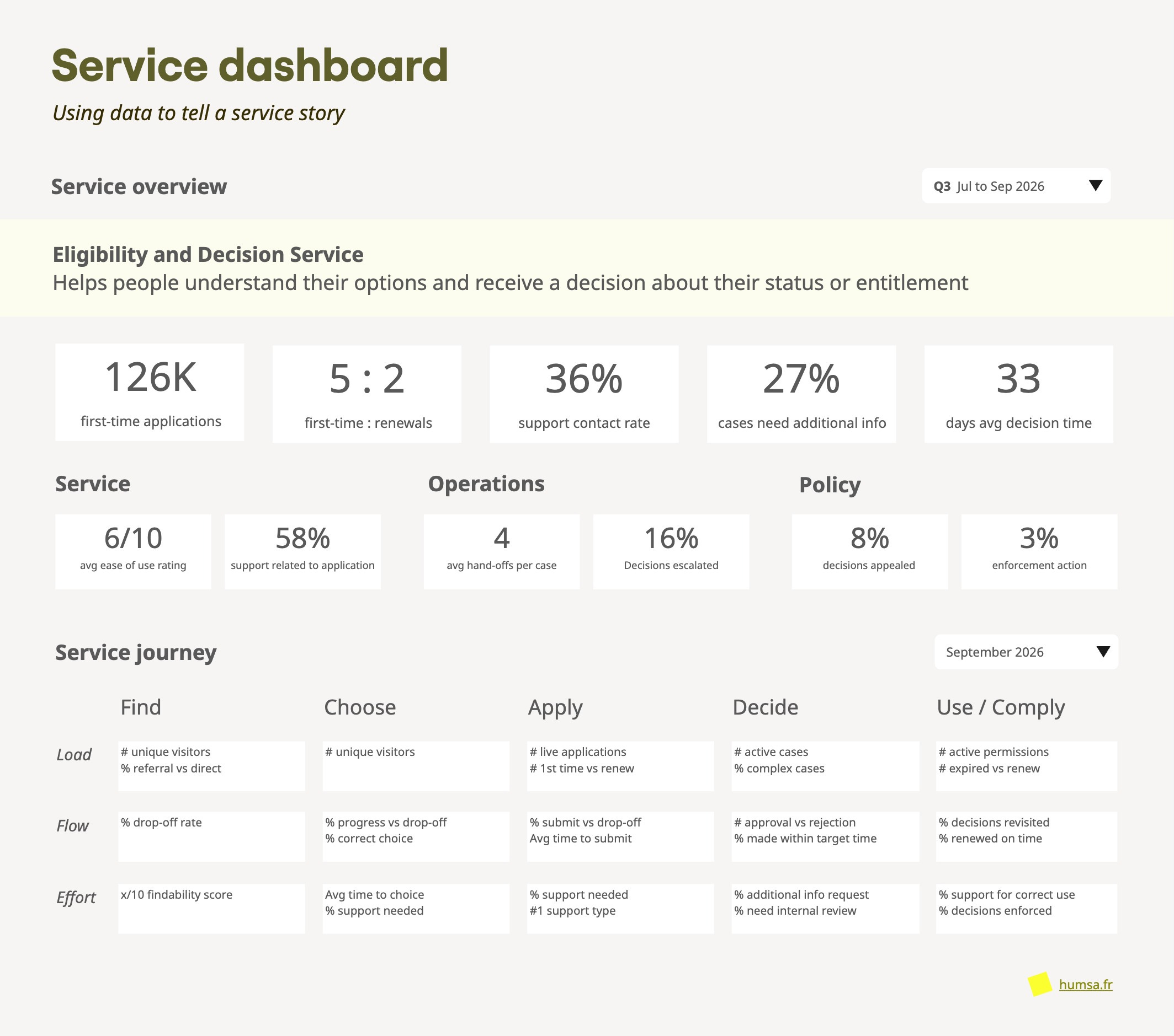 Used this way, a dashboard becomes a shared sense-making tool. It shifts the conversation from reporting to service responsiveness, and naturally raises the question of what outcomes the service is actually working towards.